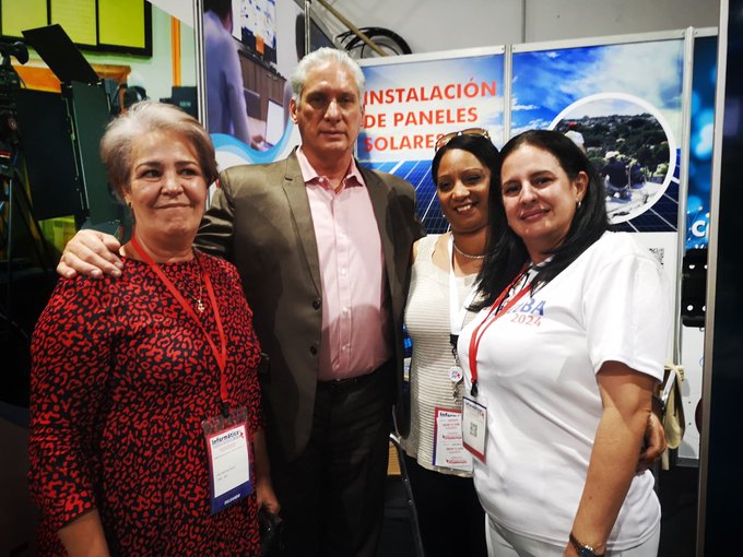 El primer secretario del Comité Central del PCC y presidente de la República, Miguel Díaz-Canel, visitó el stand de Citmatel en la Feria Internacional de Informática 2024 en Pabexpo.