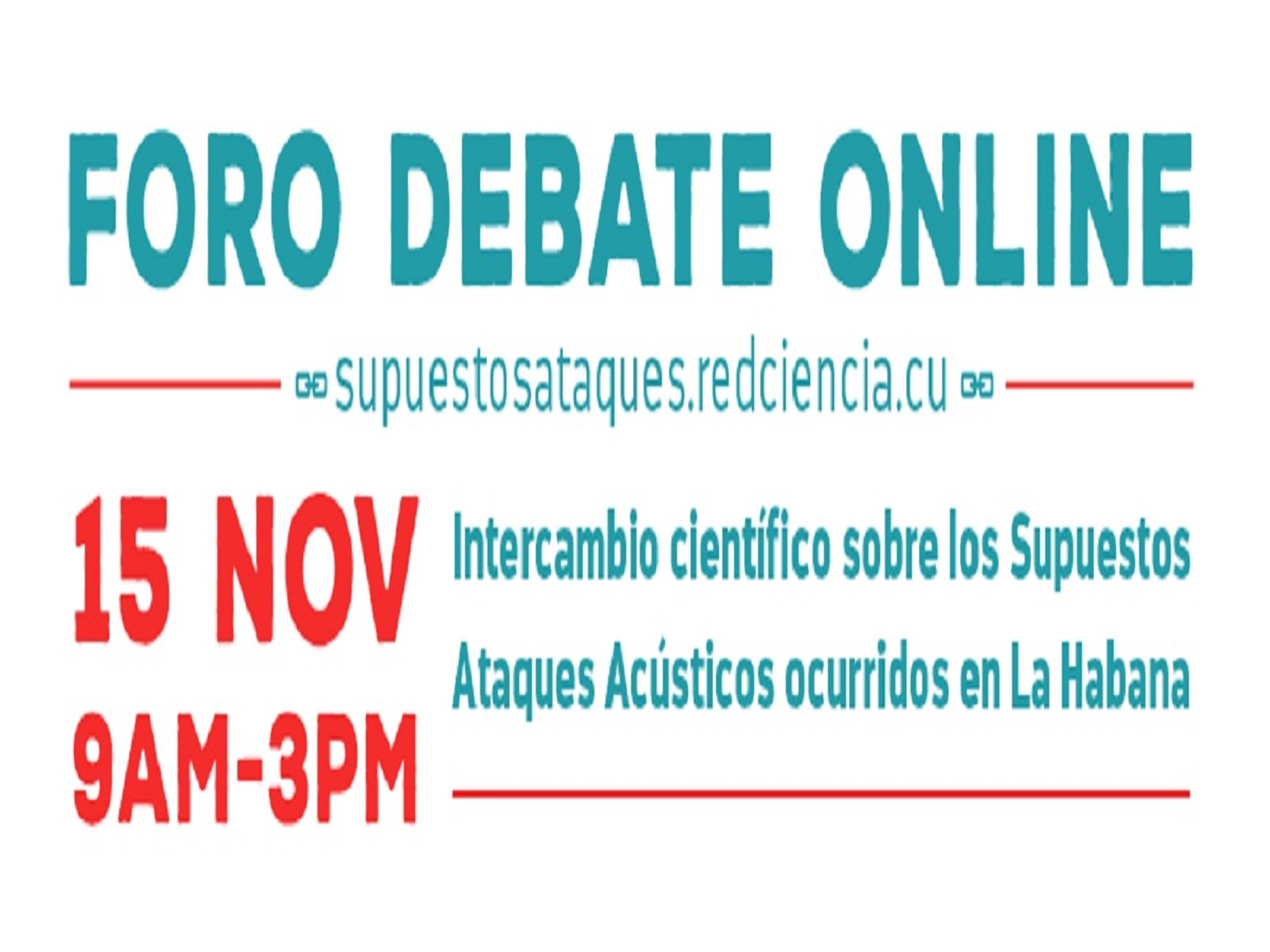El Comité de Expertos cubanos que ha estudiado los supuestos ataques acústicos a diplomáticos de Estados Unidos en La Habana, invita a participar el miércoles 15 de noviembre de 2017 desde las 09:00 hasta las 15:00, hora de Cuba, en el sitio web Red Cubana de la Ciencia, a un Foro Online titulado: Intercambio científico sobre los supuestos ataques acústicos ocurridos en La Habana, el que continuará al siguiente día 16 a partir de las 10:00 horas.